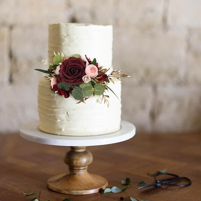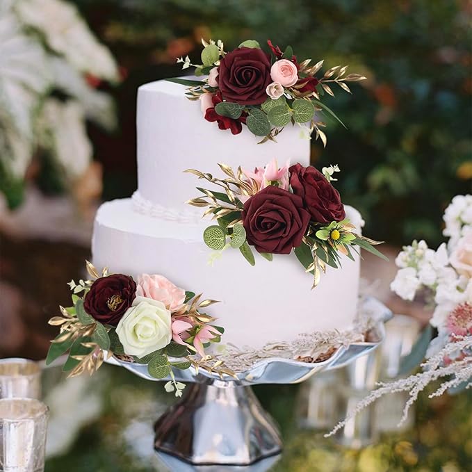 - Ideal for Wedding Cakes: Enhance the beauty of your wedding cake with these pre-made burgundy flower toppers, creating a cohesive and elegant theme for your special day.