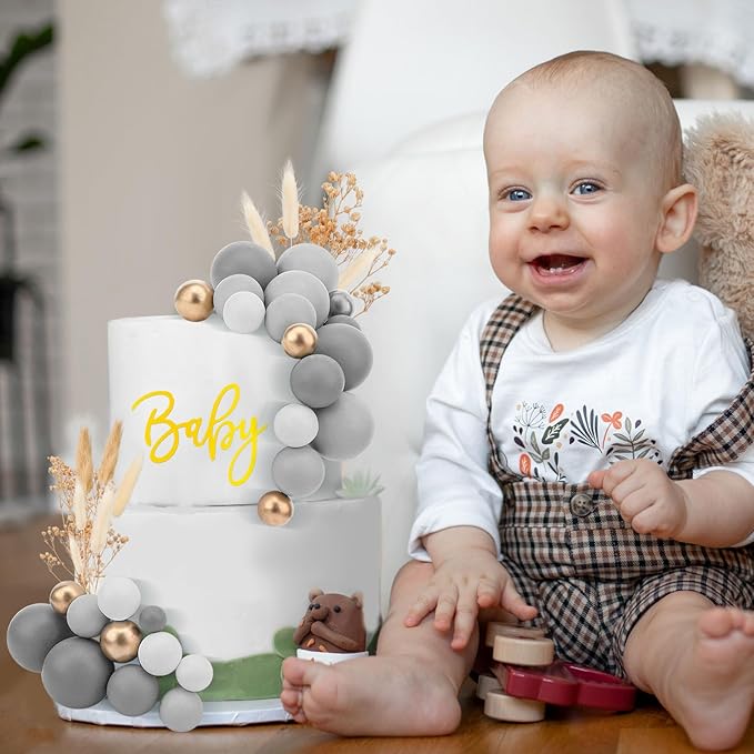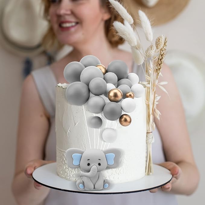 108 Pcs Balls Cake Topper DIY Cupcake Insert Foam Balloons for Cake Baking Wedding Anniversary Birthday Decoration(Dark Gray, Gray, Light Gray,Multi Sizes)