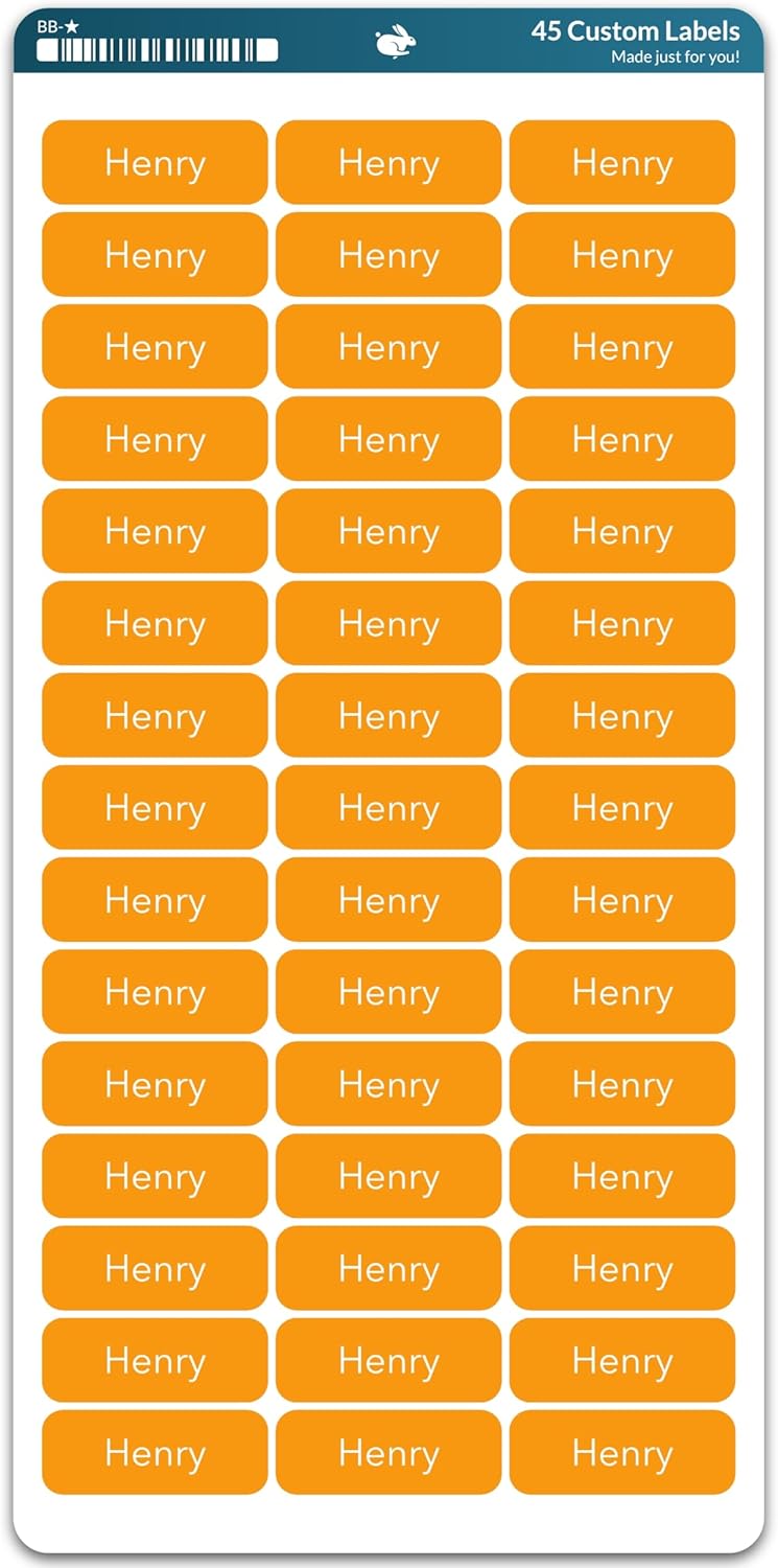 Personalized Labels (45 Labels) (1.6" 0.6") Medium Custom Name Stickers - Waterproof for Kids, Toddlers and Parents