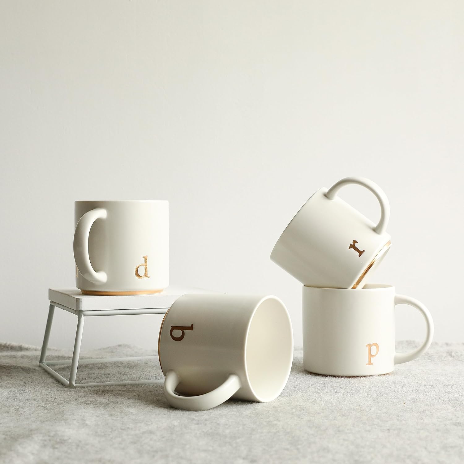 - 【Elegant Gold-Plated Alphabet Design】Our ceramic mugs showcase a stunning gold-plated monogram, adding a touch of sophistication to your morning coffee, afternoon tea, or evening hot cocoa.