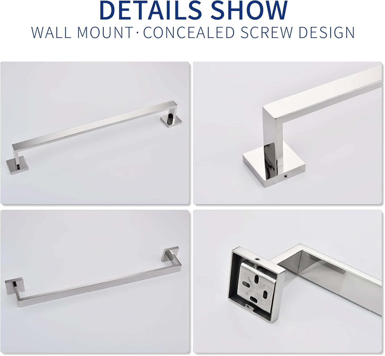 - Easy Installation: All hardware fittings are included in the package, concealed Screw Mount, the mounting screws are hidden and out of sight. SUS304 stainless towel bar with square base installation make more stable.