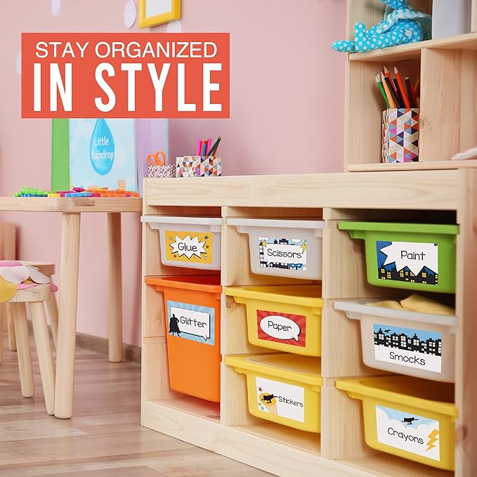 Name Tags Sticker - 56 Nametags for Classroom, Name Tag Stickers for Kids, Adhesive Classroom Labels for Teachers, Nametags Sticker for Clothes, Decorative Labels, Superhero Cubby Tags