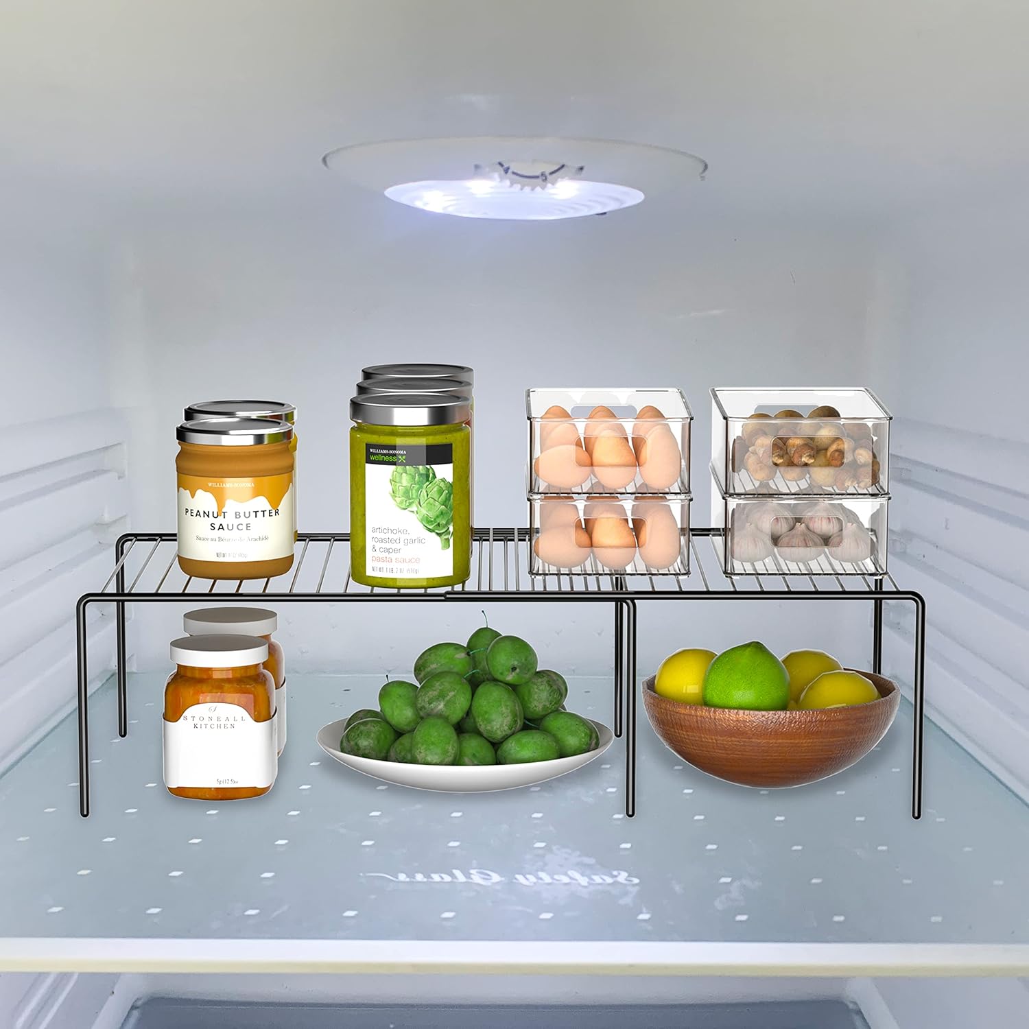 Redrubbit Cabinet Storage Shelf Rack, Expandable Metal Rustproof Kitchen Counter and Cabinet Shelf, Storage Rack Organizer Space Saver for Kitchen, Fridge, Cabinet, Bathroom, Black, Set of 6