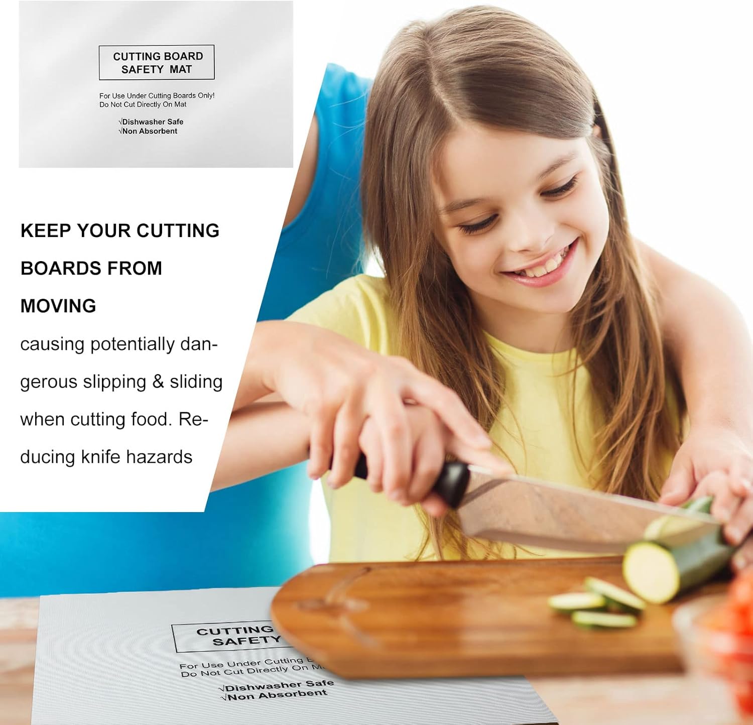- Non Slip Function: the cutting board pad is designed to be placed under the cutting board, keeping the boards from slipping on your counter top, also reducing the hazard of knife cuts