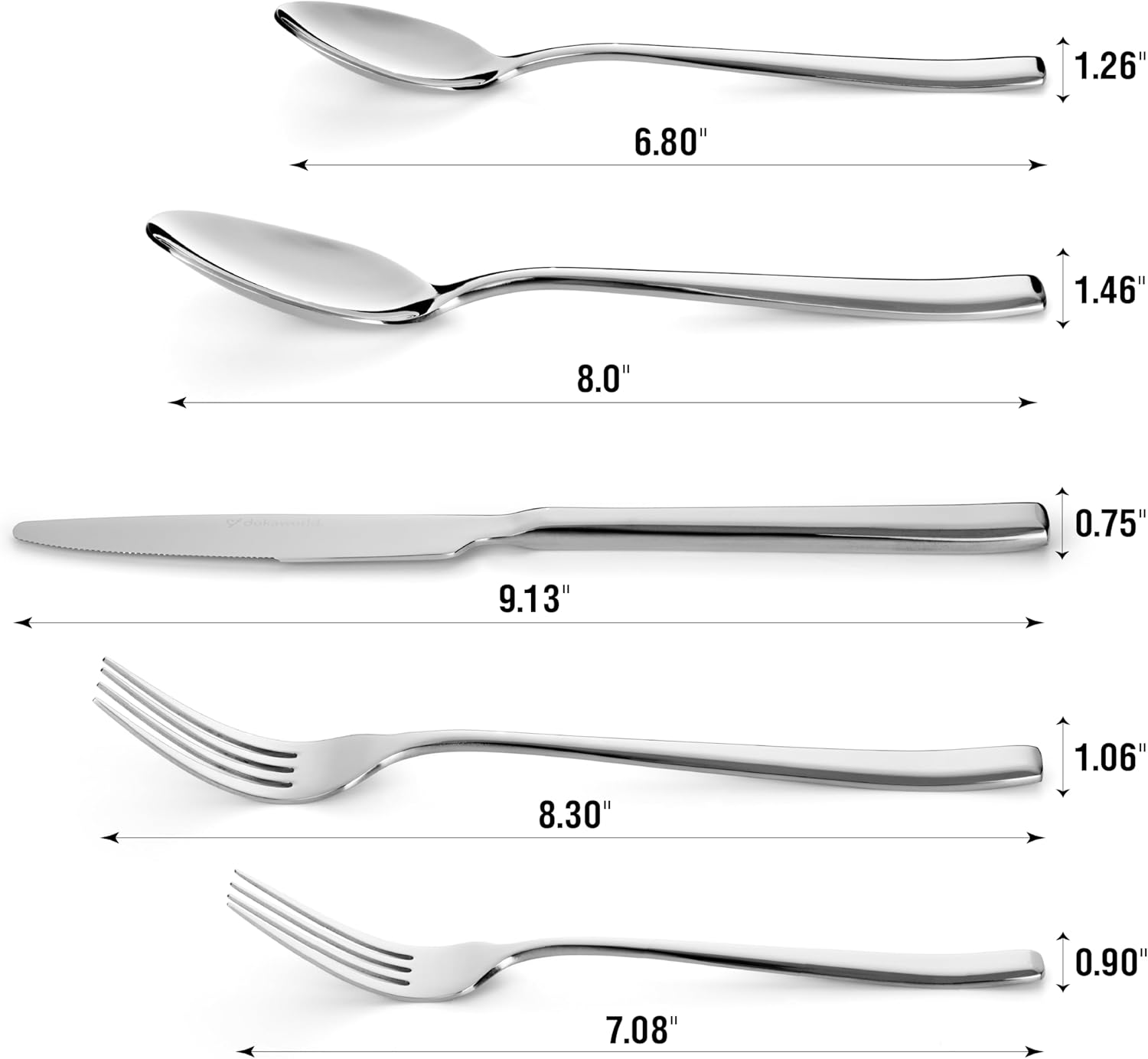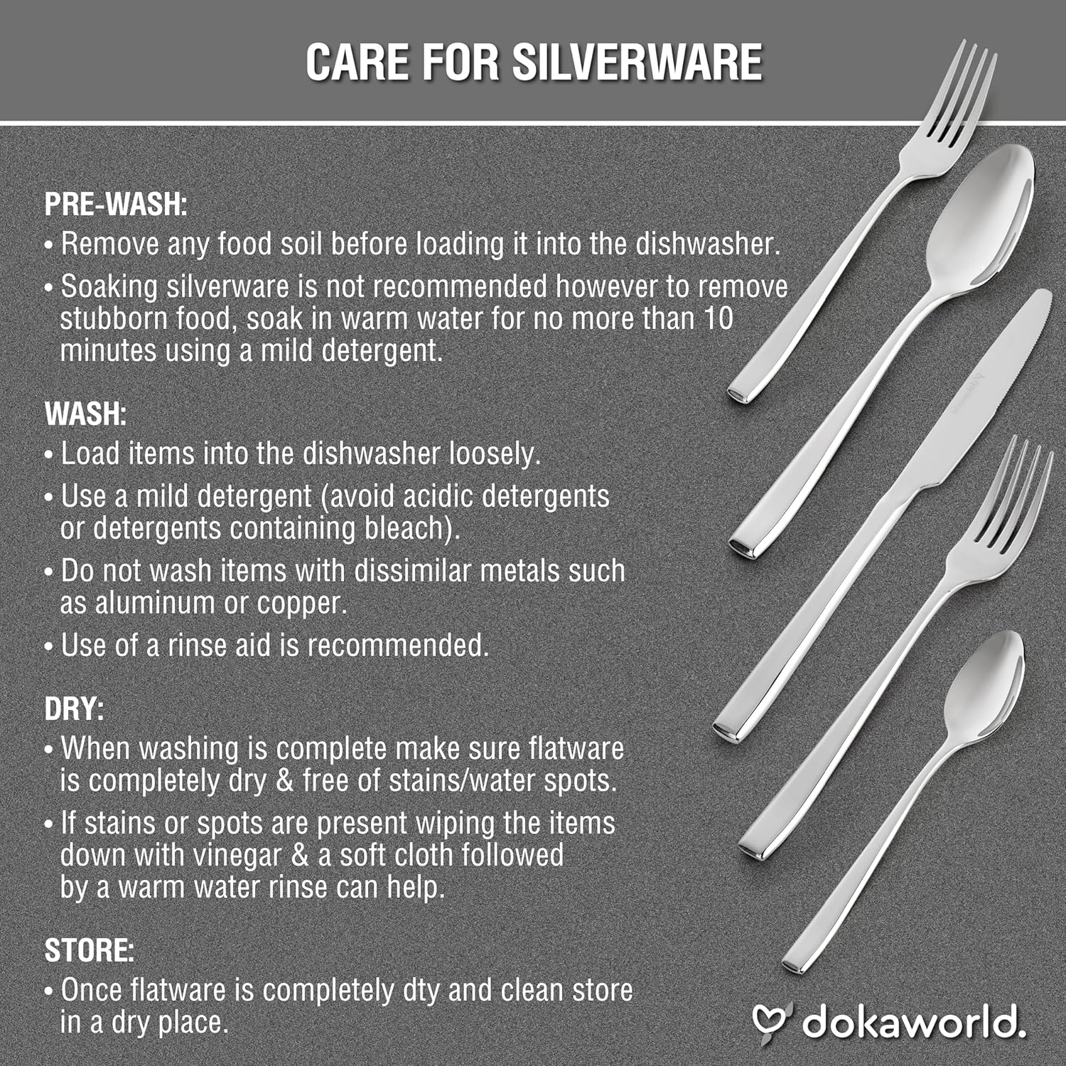 - EASY MAINTENANCE: this cutlery set is 100% dishwasher safe. Even after numerous uses and washings, it won’t lose its mirror-like polish