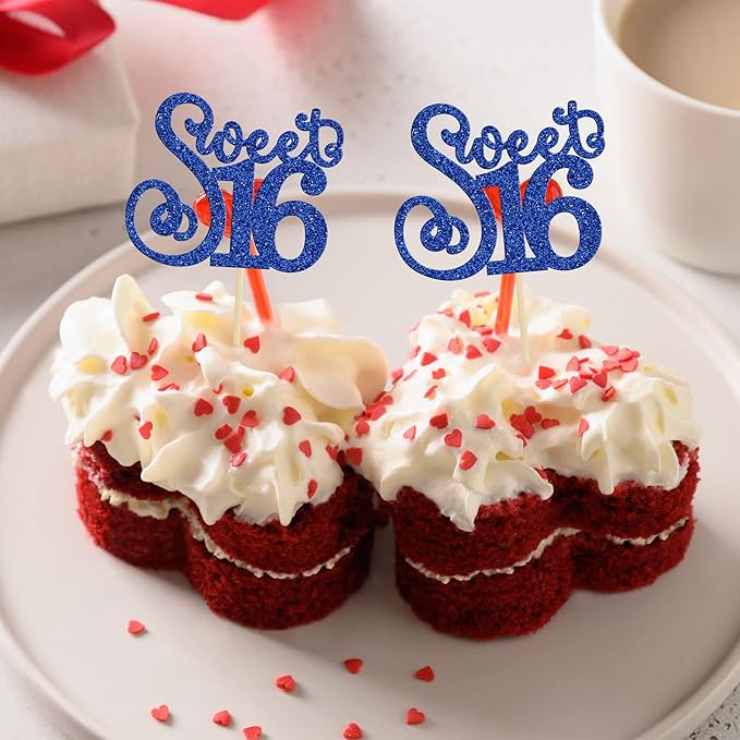 - 💕💕These Sweet 16 Cupcake Toppers are so cute and good for 16th birthday theme party, 16th anniversary theme party, 16 fabulous theme party cupcake decorations. They can make your cupcake more attractive and bring the fun to your party. You can also apply them for ice cream, fruits, cookies and other desserts.