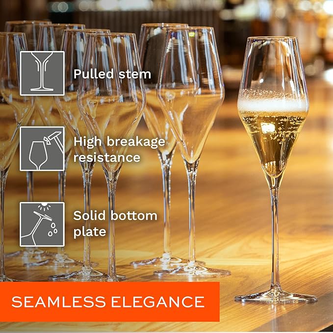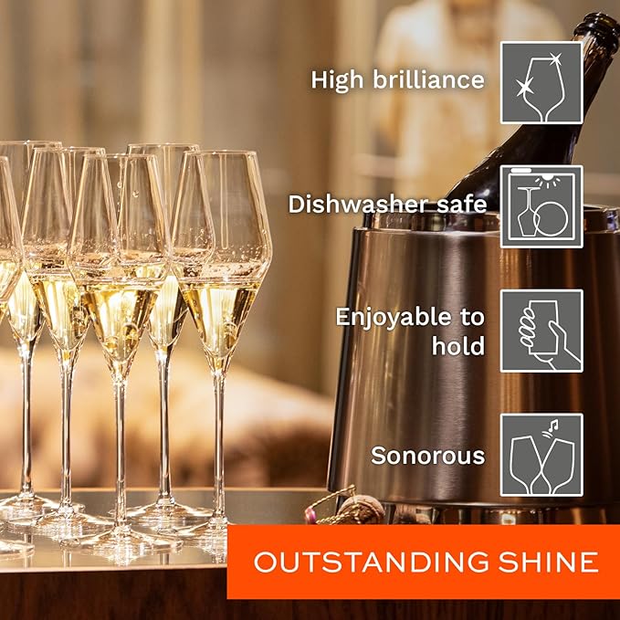 - BRILLIANT CLARITY & SHINE - enjoy every sip with these flute champagne glasses made from 100% lead-free crystal glass. The fine cut rim encourages smooth flow, while their radiant sparkle is sure to impress guests or elevate your everyday tipple