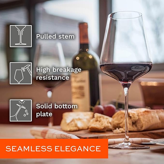 - BRILLIANT CLARITY & SHINE - enjoy every sip with these large red wine glasses made from 100% lead-free crystal glass. The fine cut rim encourages smooth flow, while their radiant sparkle is sure to impress guests or elevate your everyday tipple