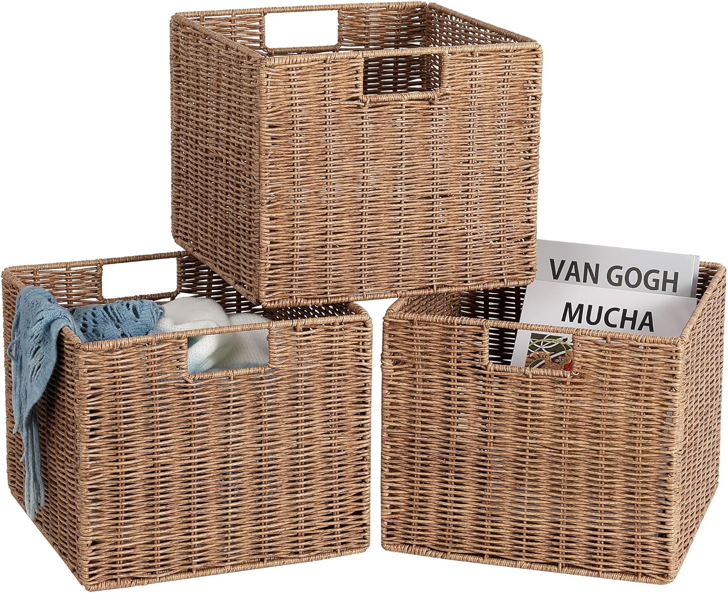 - Cube Large wicker baskets: 12"L x 12"W x 10"H.Our basket can be folded for easy storage.Size may vary within 1/4 inch due to handwoven design and manual measurement.(Please measure your shelves before purchasing to avoid returning).