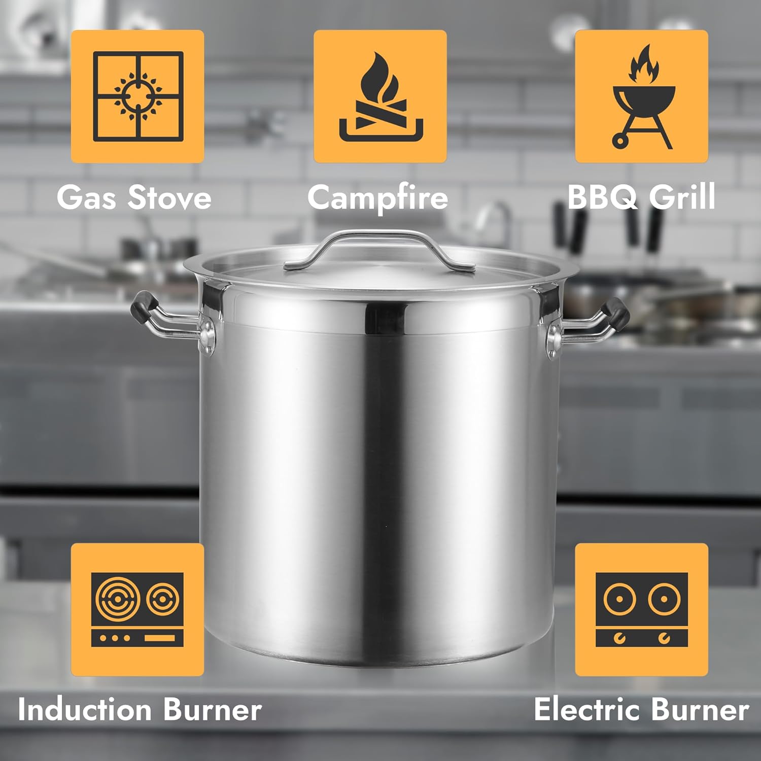 - 👍Premium Stainless Steel Construction: This stock pot is expertly crafted from 18-8 stainless steel, known for its exceptional durability, corrosion resistance, and hygienic properties.
