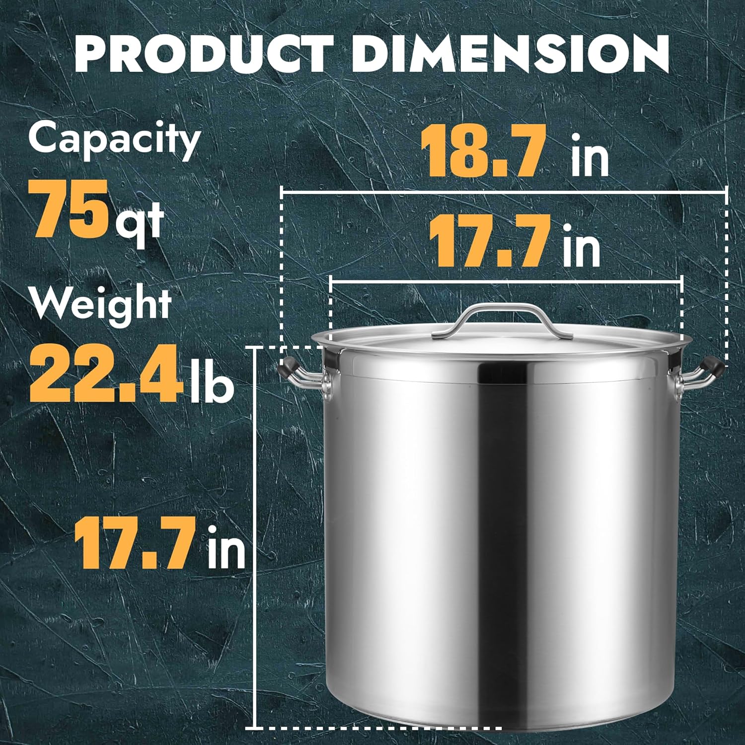 - 👍Versatile Size Options: Choose from our range of sizes, including 12qt, 20qt, 32qt, 50qt, 75qt, and 100qt, to suit your cooking needs. Whether you're preparing a family meal or catering for a large event, this stock pot provides ample capacity for any occasion.