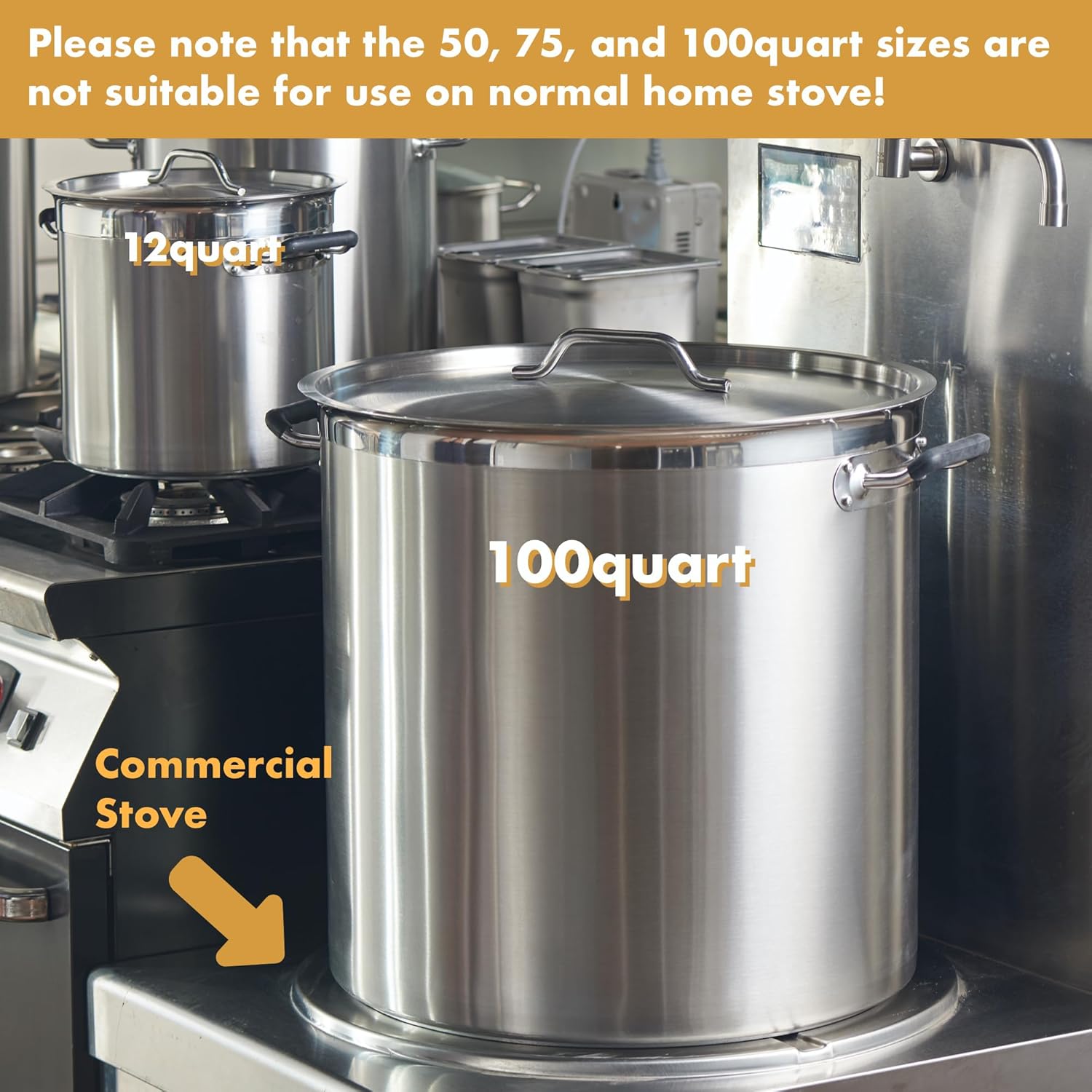 - 👍Versatile Size Options: Choose from our range of sizes, including 12qt, 20qt, 32qt, 50qt, 75qt, and 100qt, to suit your cooking needs. Whether you're preparing a family meal or catering for a large event, this stock pot provides ample capacity for any occasion.
