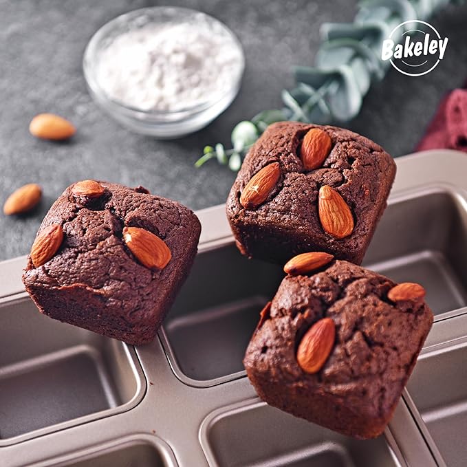 Brownie Cake Pan, 9-Cavity Non-Stick Square Muffin Pan Blondie Bakeware for Oven Baking (Champagne Gold)