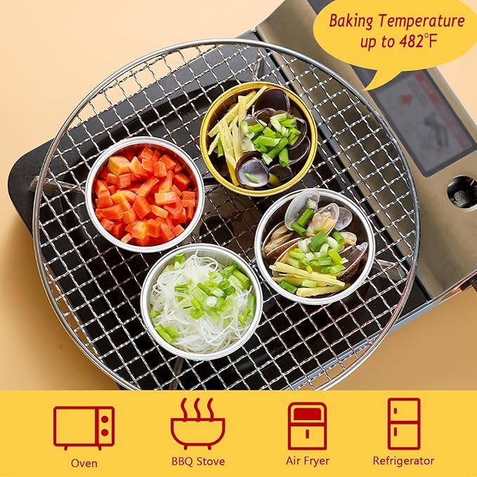 - 【Mini Aluminum Foil Baking Tins】 - These jumbo muffin cups are made of food-grade aluminum foil that has excellent thermal conductivity, shortening baking time. They are oven, grill, air fryer and refrigerator safe and can withstand temperatures of up to 250℃/482℉.(NOTE:The clear lids are not heat resistant!)