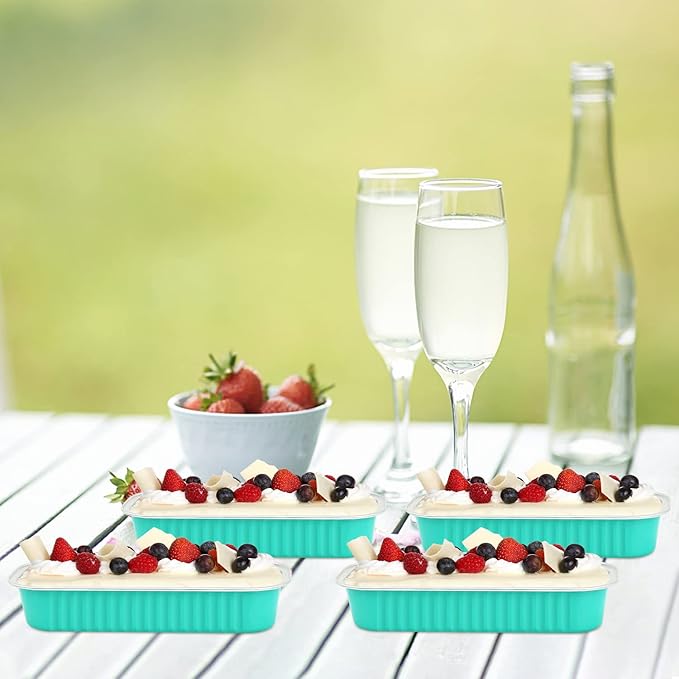 LNYZQUS Mini Loaf Baking Pans with Lids 100 Pack, 6.8oz Rectangle Mini Cake Tins Baking Cups,Disposable Aluminum Foil Baking Pan Muffin Tins Containers -Cyan Blue