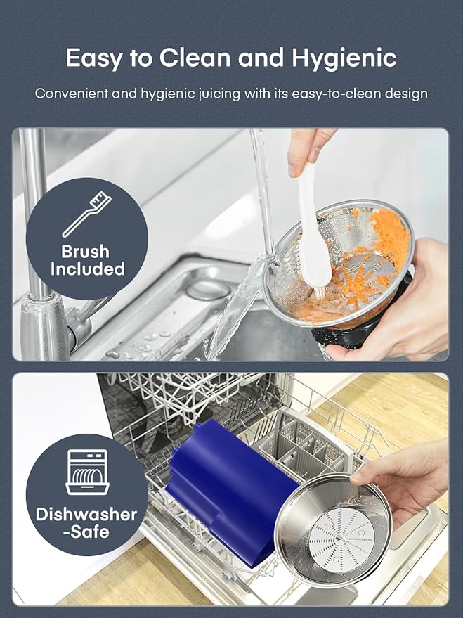- Want cleanup after juicing to be a breeze - With a brush to clean juicing filter, dishwasher-safe accessories, cleanup will never feel like a chore