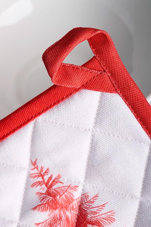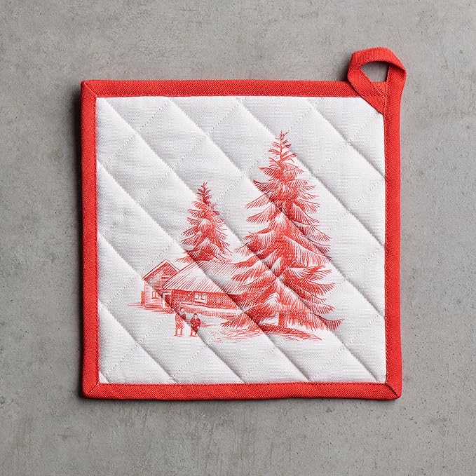 Maison d' Hermine Pot Holders 100% Cotton Heat Resistant Potholders 8" x 8" Hot Pads with Loop BBQ, Cooking, Baking, Grilling, Kitchen, Handling Hot Pans (Pack of 1, Winter Jouy)