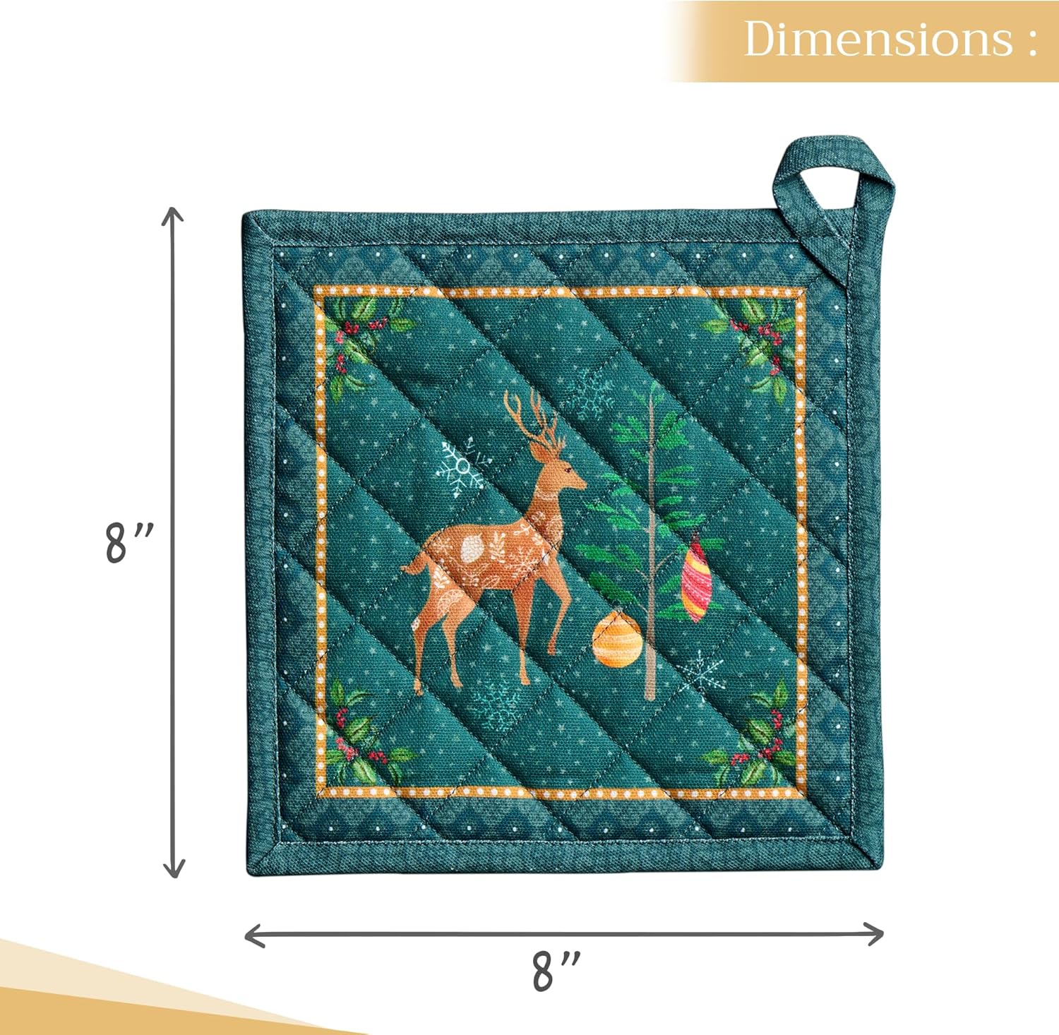 Maison d' Hermine Pot Holders Set 100% Cotton Heat Resistant Potholders 8" x 8" Hot Pads with Loop BBQ, Cooking, Baking, Grilling, Kitchen, Handling Hot Pans (Pack of 2, Hygge Christmas)