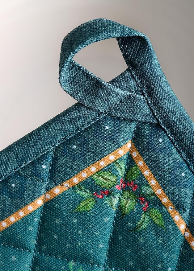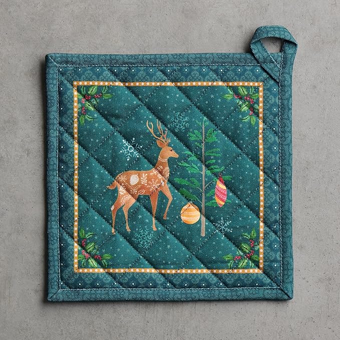 Maison d' Hermine Pot Holders 100% Cotton Heat Resistant Potholders 8" x 8" Hot Pads with Loop BBQ, Cooking, Baking, Grilling, Kitchen, Handling Hot Pans (Pack of 1, Hygge Christmas)