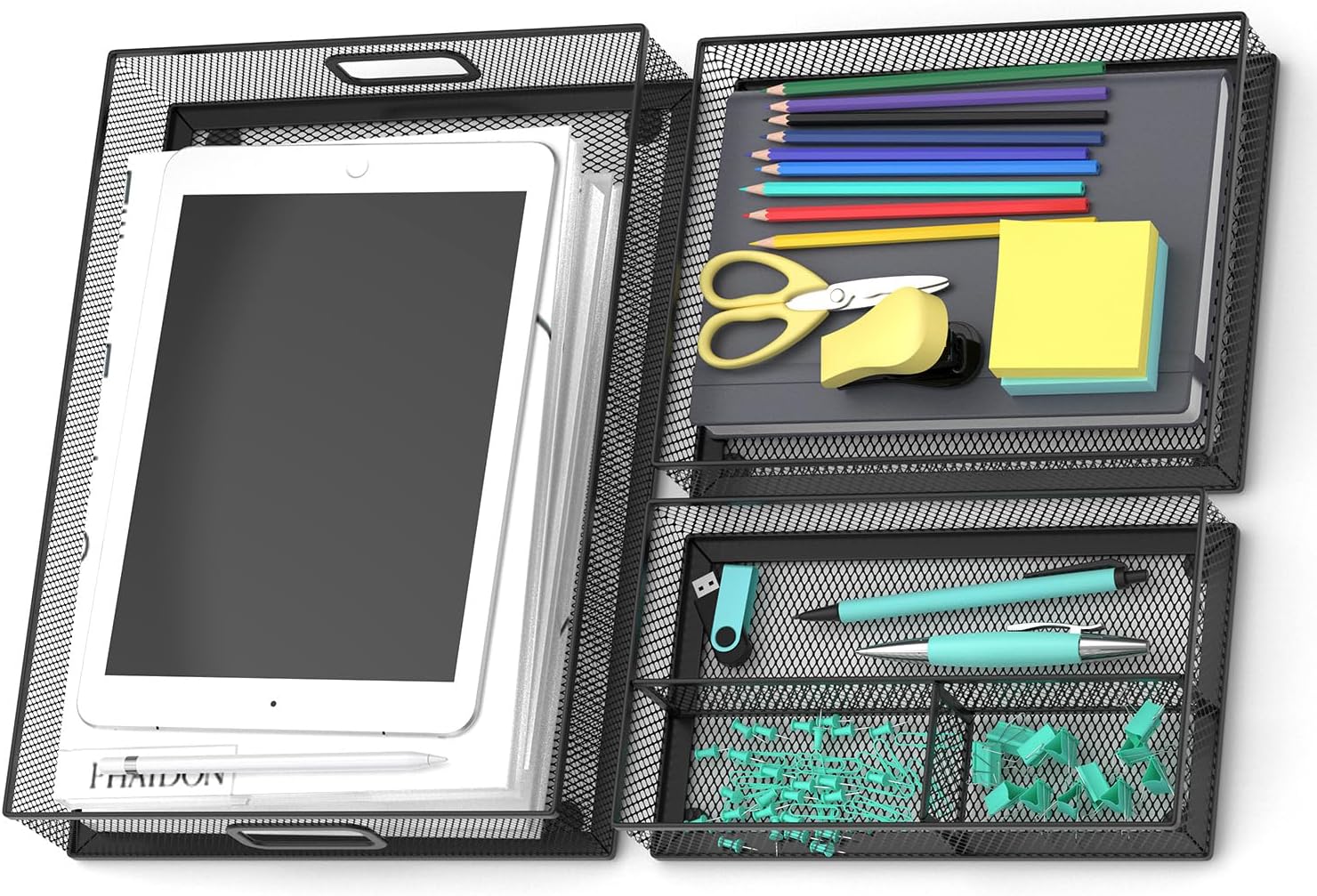 - Metal Construction: Made from high-quality metal, all the 3 desk drawer organizers are built to last. Comes with 4 cushion sponge pads on each bottom to keep it antiskid and stable.