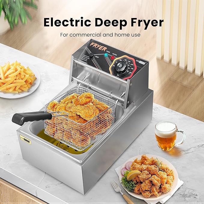 - SIMPLE TO OPERATE - Each component of the fryer can be disassembled and cleaned independently, making it user-friendly and convenient to operate; The frying basket can be hung on a crossbar to drain excess oil from freshly fried food, reducing oil consumption and maintaining a healthy life; This deep fryer is equipped with detailed instructions, even a novice kitchen worker can master it well