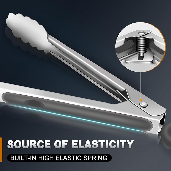 - ERGONOMIC HANDLE DESIGN AND HEAT RESISTANT: tongs for cooking The handle is cushioned with silicon, good for thumb rest and ensures good grip and control. The metal tong head is super heat resistant. Easy to rinse, dishwasher safe.