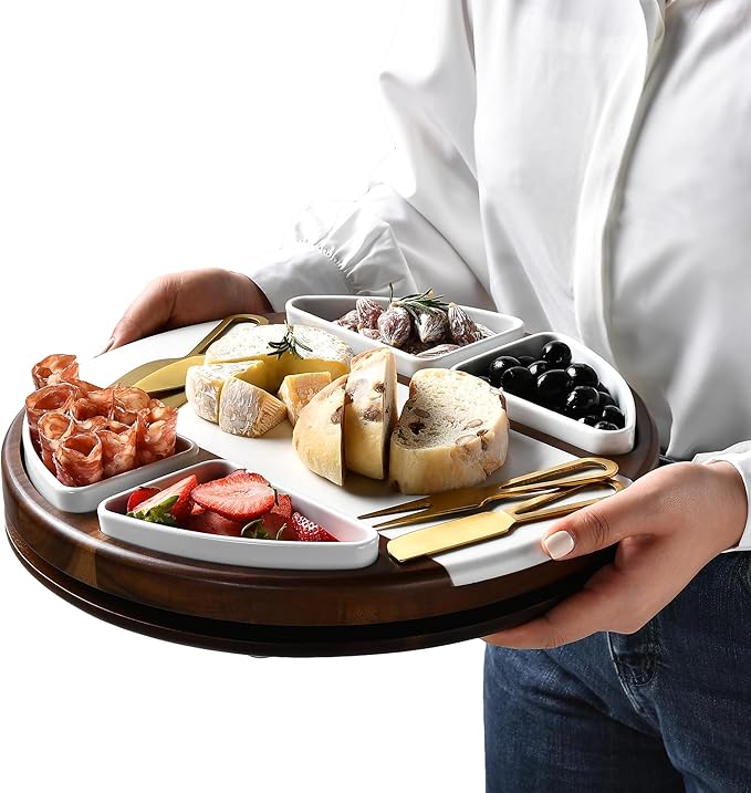 - Elevate Your Entertaining Experience: This Shanik Lazy Susan charcuterie board, crafted from premium Acacia wood, acts as the perfect centerpiece for any gathering, providing an elegant and functional platform to serve an array of cheeses, meats, and more. Immerse friends and family in a world of flavors with easy access and effortless spin, making hosting easy and luxurious.