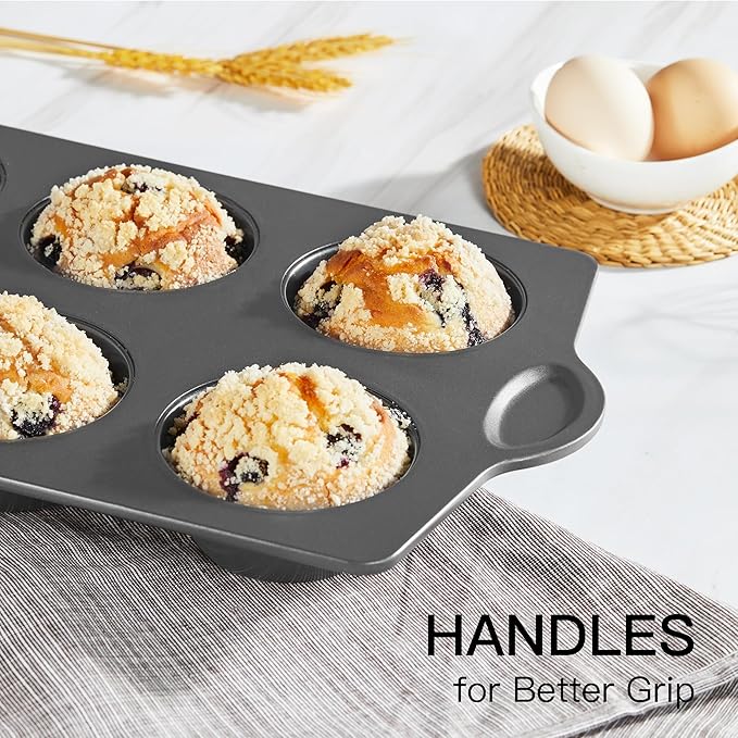 - LARGE SIZE & 6 HOLES - Each pan measures 16.25x9.5 inches, and each cup is 3.5 in diameter. Our nonstick 6 muffin pans are good for daily cooking, family dinner, birthday party, friends' gathering, festival celebrations, etc. Versatile use for sweet and savory