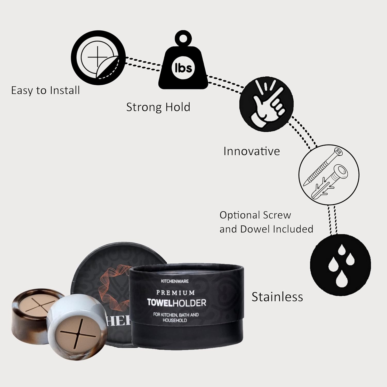 - Gift-Ready - Our towel hooks make a great gift thanks to the high-quality, specially designed paper tube packaging. They're perfect for newlyweds, home changers, and anyone who spends time in the kitchen. Plus, we offer a warranty and are committed to 100% customer satisfaction.