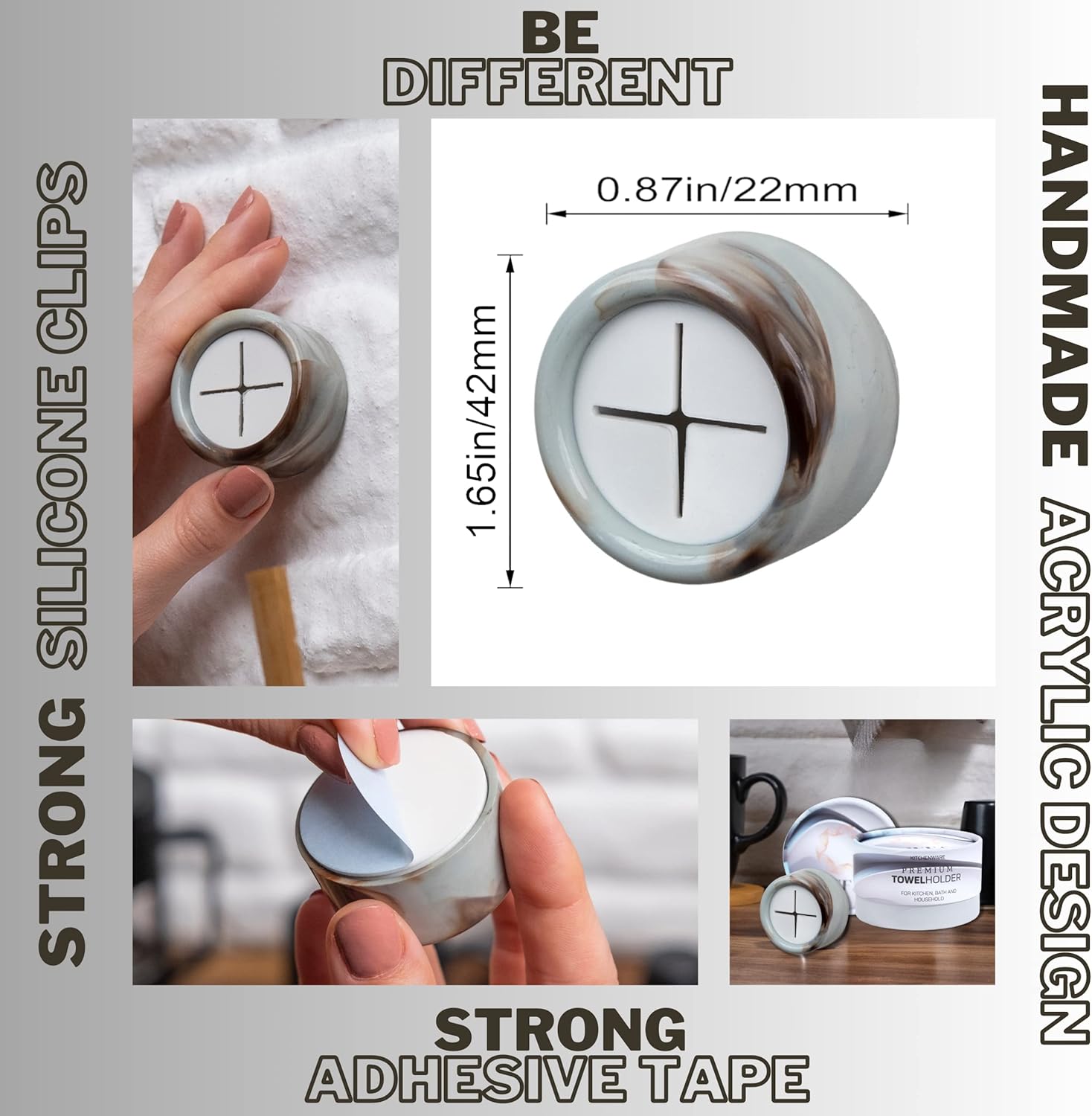 - Elegance & Premium Design - Our towel hooks feature a premium and exclusive design with acrylic body that is both elegant and durable. Patterns may differ from what is shown in the picture, as it is a product-specific application. Unlike similar hangers, our product uses high quality materials for long-lasting use. You will appreciate the premium feel and user experience. You are holding our product in your hand.