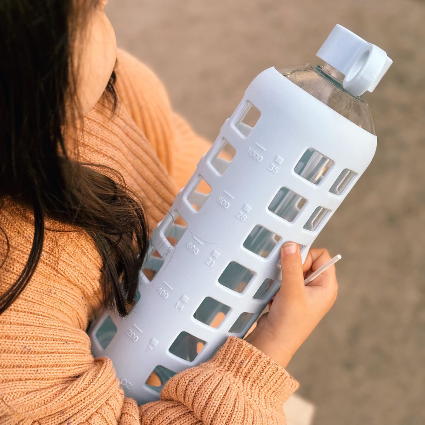 - Stylish protection: Silicone sleeve adds grip and impact resistance with color options; available in multiple sizes including big glass water bottles and 32oz water bottles.