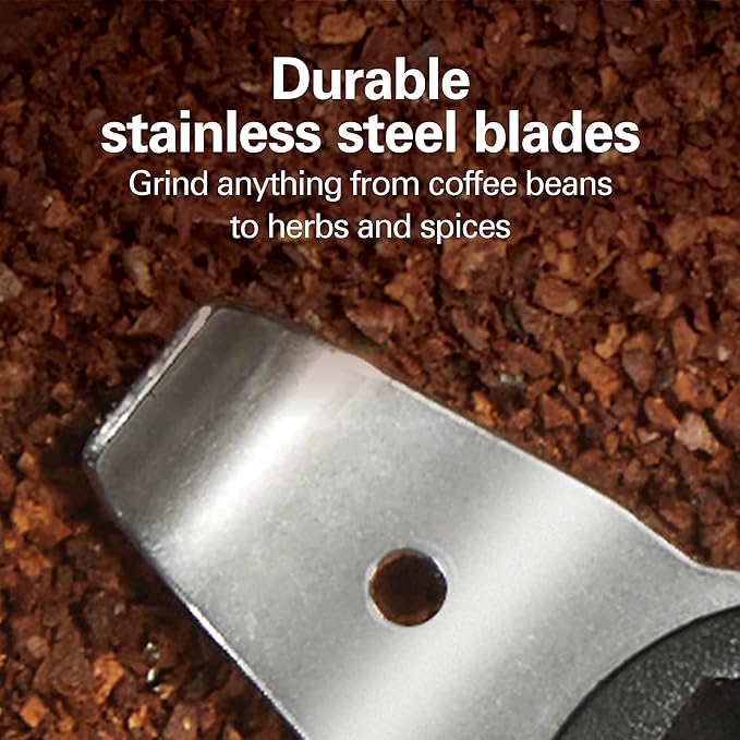 - DURABLE STAINLESS STEEL BLADES: With the durable stainless steel blades, this small coffee grinder makes easy work of grinding everything from coffee beans to herbs and spices.