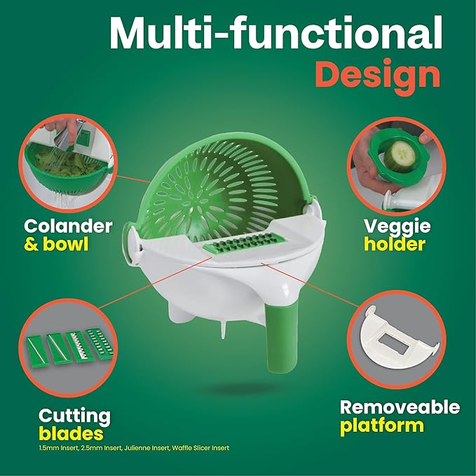 - Salad Preparation is Easier than Ever: We all love a good salad, but no one wants to be cutting with a knife all day. You can slice, grate, and rinse practically every salad food ingredient in a flash. Use it as an apple slicer, cabbage shredder or to cut any other salad vegetable, then rinse and strain in the same bowl. It’s the only kitchen tool you need to make short work of your salad preparation.