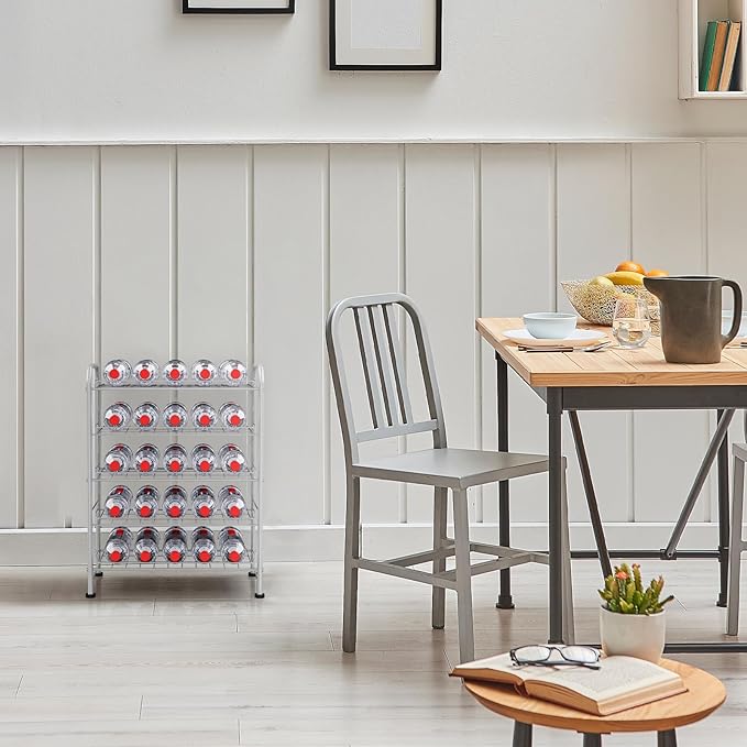 - ✅【Reliable Quality】 This water bottle storage rack is made of premium rust-resistant coating metal, sturdy and durable, with a strong load-bearing capacity. Each tier holds up to 8 pounds, and each tier with an extra iron shelf to prevent bottles from falling out of the bottle storage rack.