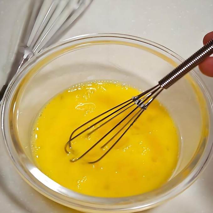 - [Reinforced Metal Whisk]:10 inches of food-grade stainless steel whisk adopted bold 6 wire processing, which solves the pain of bending or the line breaking of some common whisks for cooking on the market during some heavy mixing and stirring.The wires do not get tangled in each other and the spacing helps wire whisk liquids better.
