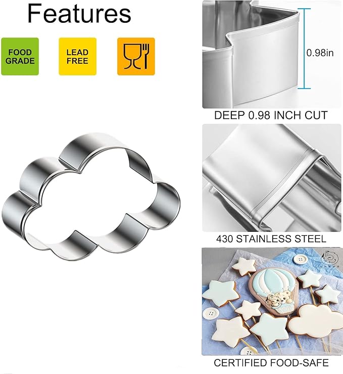 3 Pieces Star, Moon and Cloud Cookie Cutters Stainless Steel Biscuit Cutters Molds Shapes for Baby Shower or Gender Reveal Party