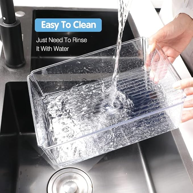 - 【Drain Tray Design】 Our 10 pack refrigerator organizer bins come with a unique tray and dripping hole design at the bottom. This design helps to keep produce elevated and away from moisture, making it possible to store directly after cleaning. It is an effective way to keep food fresh while also extending the shelf life of food in the fridge