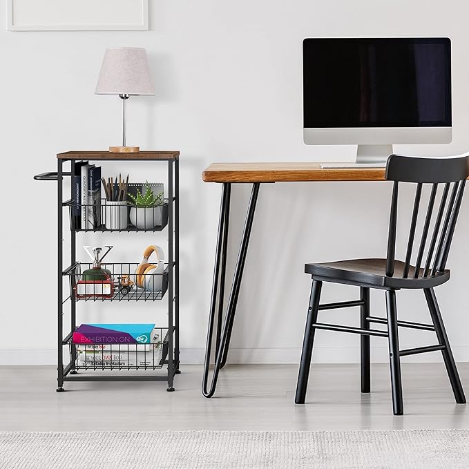 - 【360 Rotating Wheels & Adjustable Feet Pad & Handles】Equipped with four 360°rotating wheels (two lockable) and four adjustable leveling feet, this rolling kitchen cart glides smoothly or stays securely in place. The included handle makes it easy to move the pantry baskets cart to any desired location while protecting your floors from scratches.