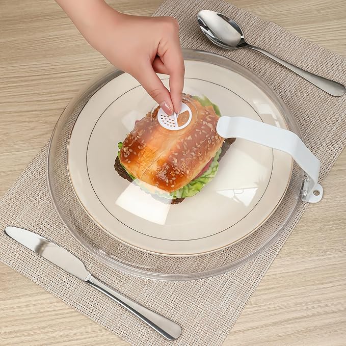 WENWELL Microwave Splatter Cover for Food 12",Large Clear Microwave Splash Guard Cooker lid with Handle,Dish bowl Plate Serving Cover Home Kitchen Essential,BPA-Free,Saft Plastic