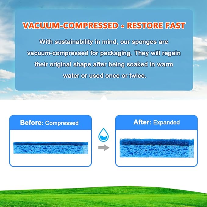 - Effortless Cleaning and Dishwasher-Friendly: Orighty Non-scratch sponges are made from premium cellulose materials. After use, a quick rinse with water is all it takes. They dry rapidly without any unwanted smells. You can even run them through your dishwasher for thorough sanitization and lasting utility