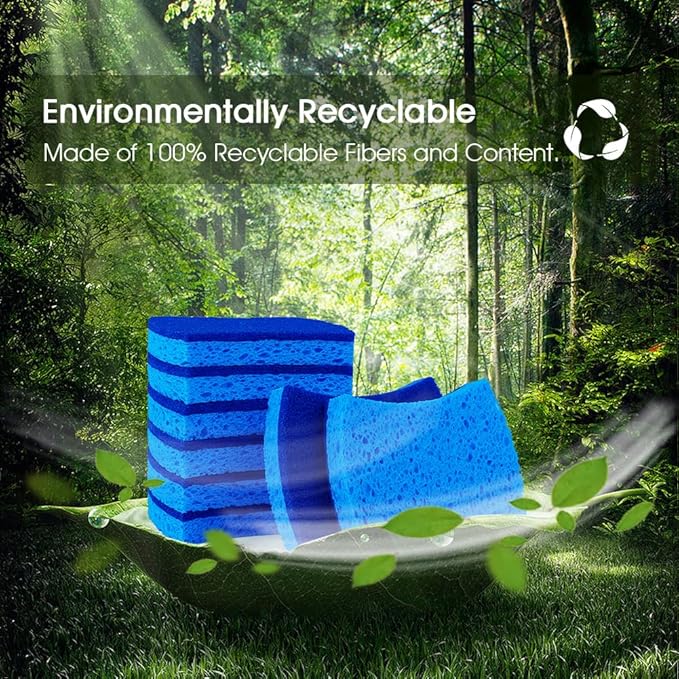 Orighty Non-Scratch Cellulose Scrub Sponges 24 Pack, Kitchen Sponges for Kitchen, Bathroom, and Household, Dual Side Sponge for Dishes, Non-Scratch Sponge Safe on Non-Stick Cookware, Car and More