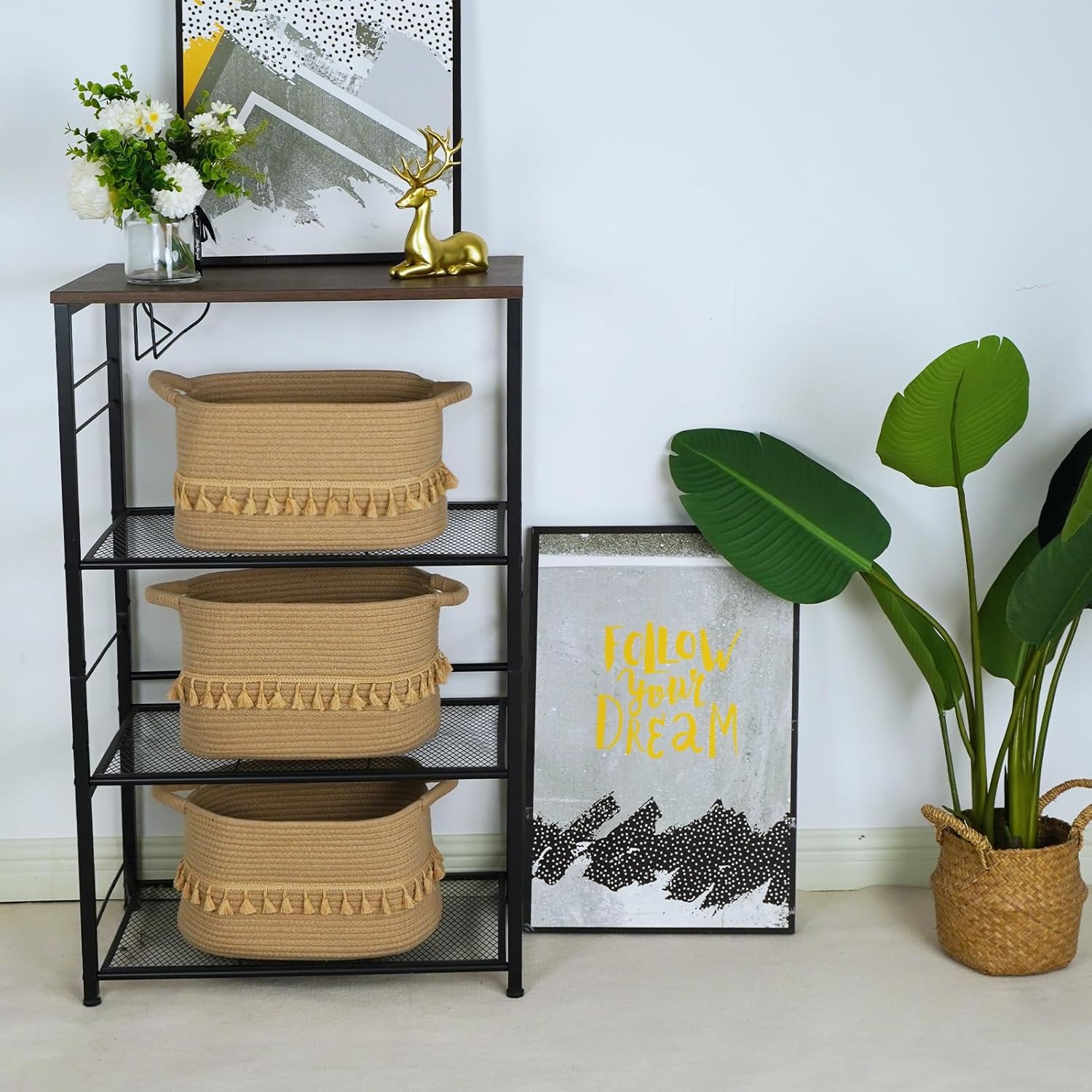- ✨Chic and Practical Storage: Our storage baskets are both stylish and functional, allowing you to organize your home with ease and elegance. Made from pure cotton, our woven storage basket are soft, flexible, and durable, with a unique tassel design that sets them apart from the rest. It's not just a storage basket, it's a decorative basket for your home. Use them in any room of your home to store blankets, toys, magazines, and more. The pet toys and small snacks also have their own place to go.