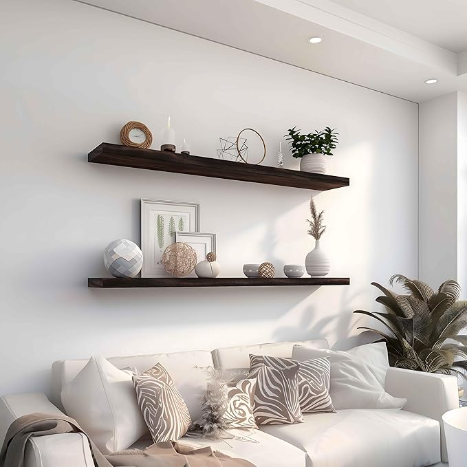 Wood Floating Shelves for Wall Decor, Rustic Wall Shelves for Bedroom Bathroom Kitchen Living Room, Set of 4 Walnut 48 Inch