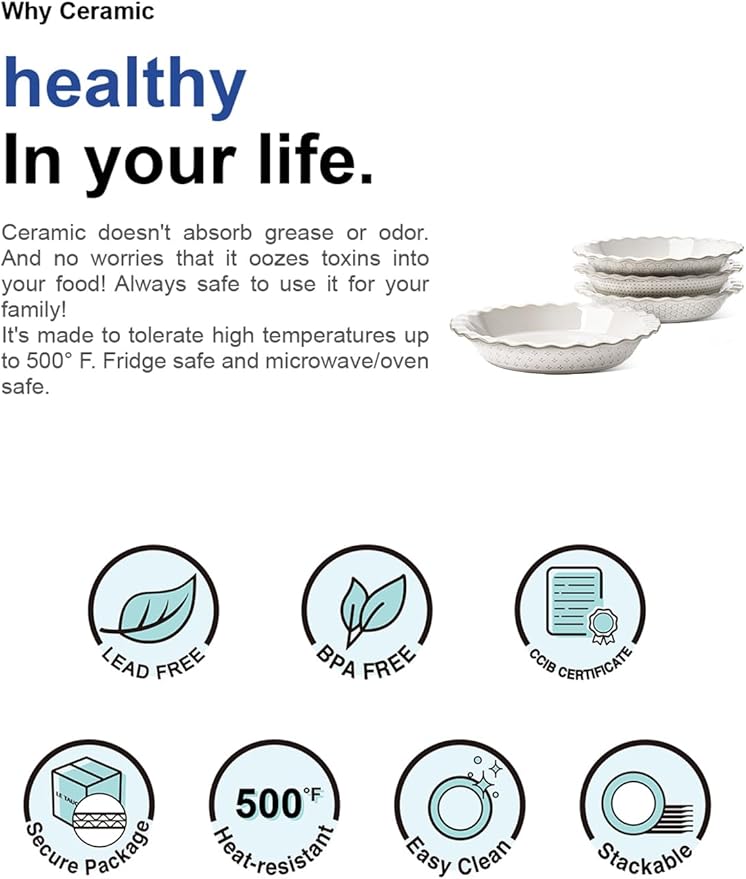 - High Quality Ceramic Material:The ceramic pie dish elevates pie baking from ordinary to art as it evenly distributes the heat during baking. The highly resistant glaze does not absorb food odors or flavors
