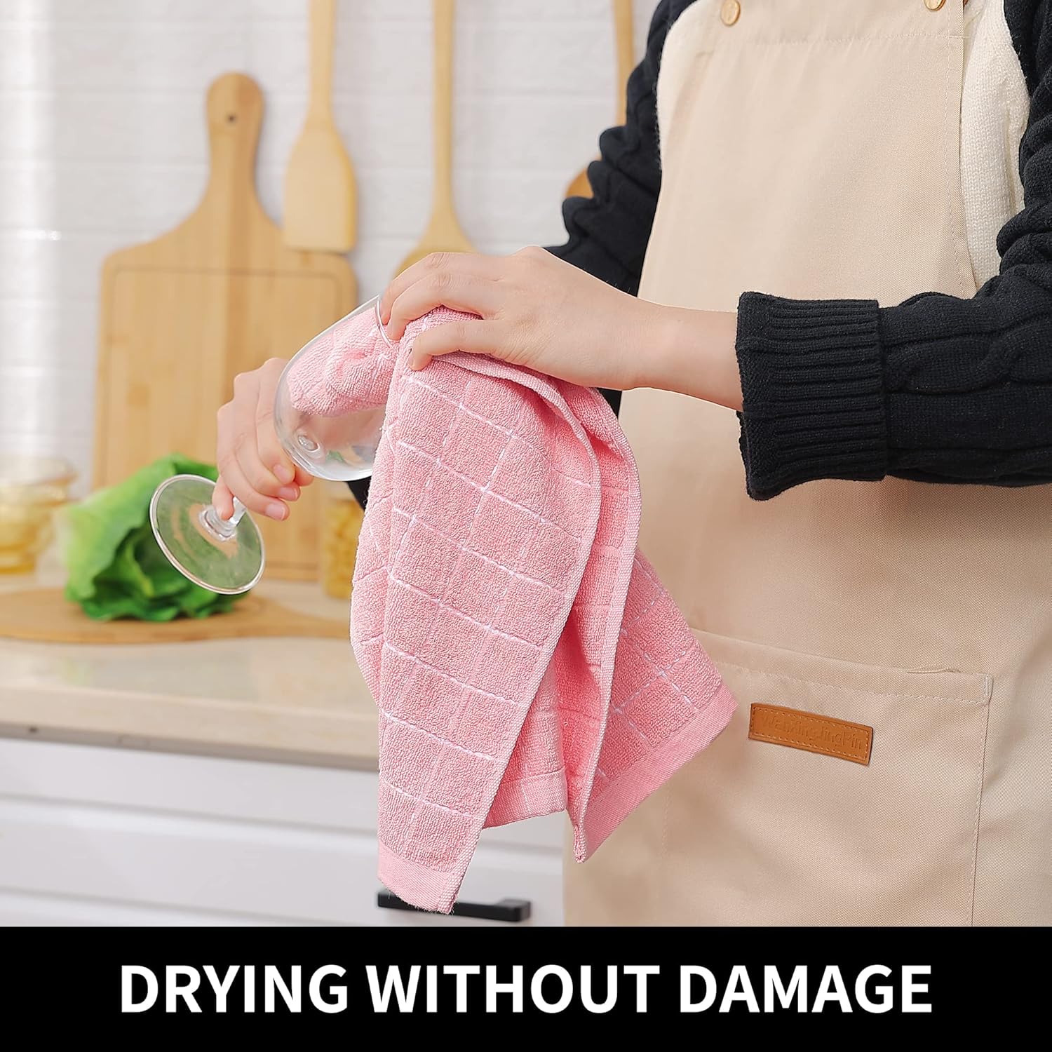 Homaxy 100% Cotton Terry Kitchen Towels(Pink, 13 x 28 inches), Checkered Designed, Soft and Super Absorbent Dish Towels, 8 Pack