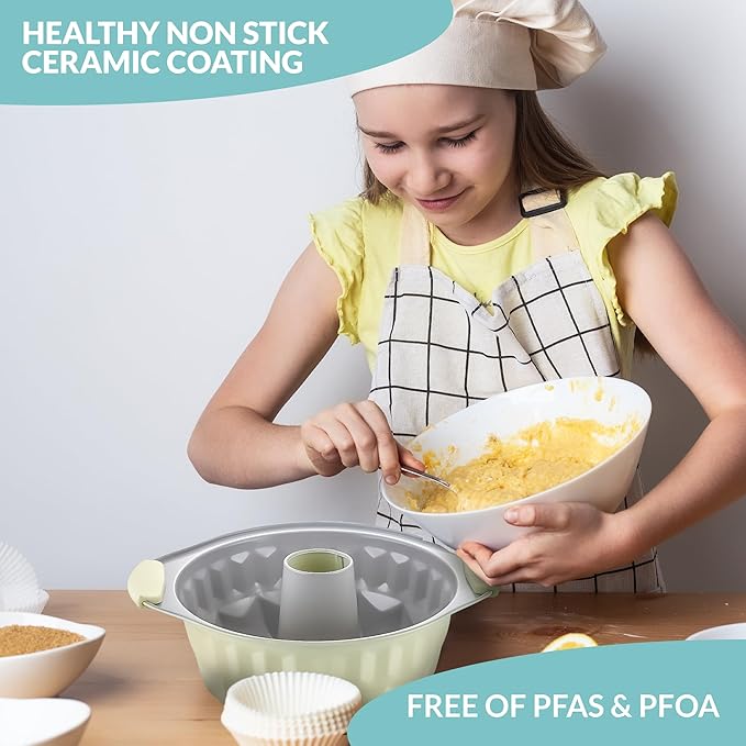 - VERSATILE BAKING MOLD: From fluted cake to tube pan for baking pound cake, this ceramic pan is versatile in baking different types of cakes. It can also be used as a 10 Inches bundt pan, making it an essential addition to your kitchen.