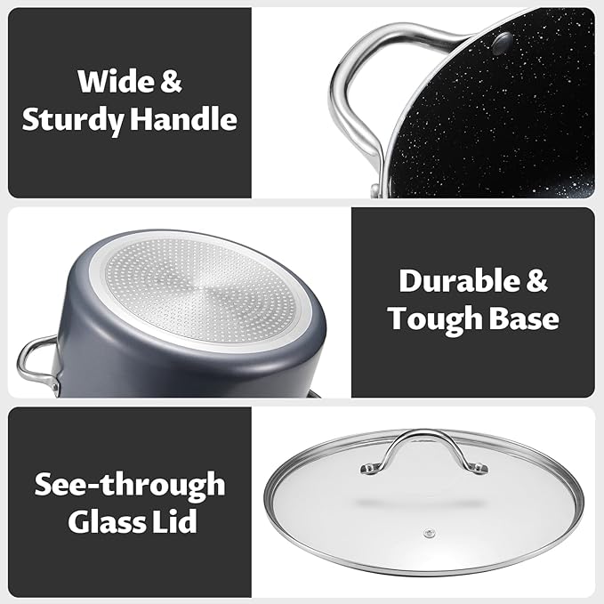 - Ultra-Nonstick Large Stock Pot: Ensures 3x better food release for extended usability & effortless cleaning