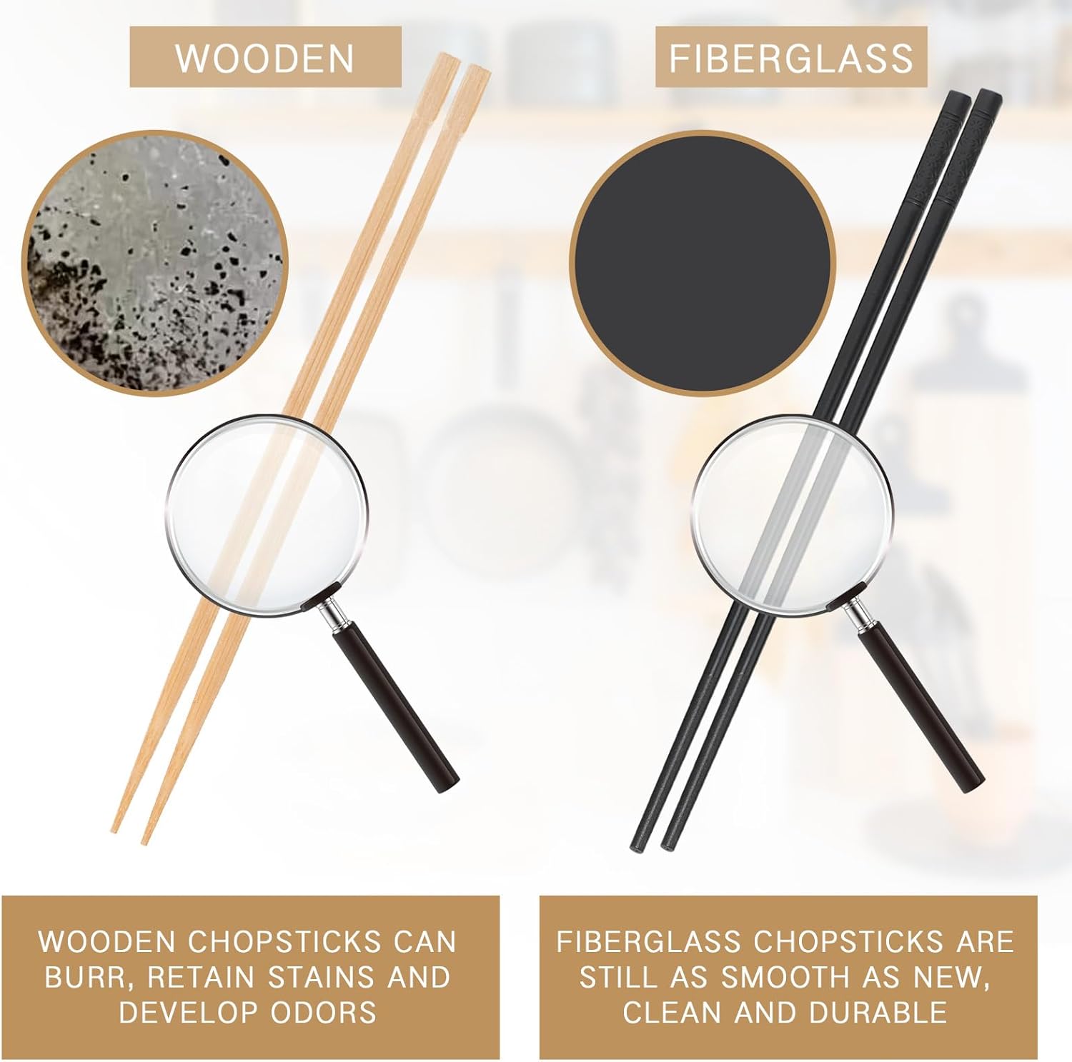 - Versatile Usages: you can use our fiberglass chopsticks set to taste some classic Asian food, such as dumplings, noodles, sushi, lamian noodles, hot pot, and more; Besides, they are also suitable for restaurants, kitchens, schools, offices, canteens, picnics, and other places