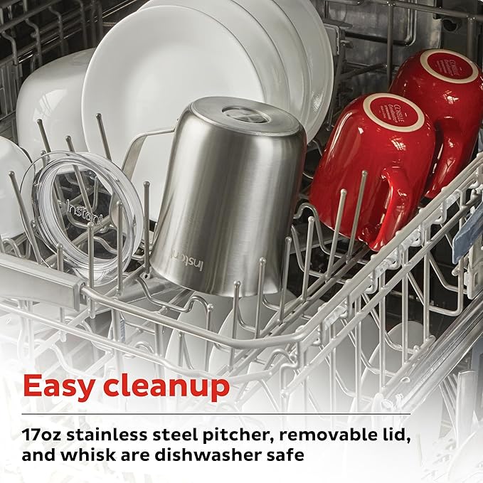 - Quick Cleanup: No more fighting about who has to do the dishes. The dishwasher-safe pitcher, lid, and whisk make clean-up a breeze.