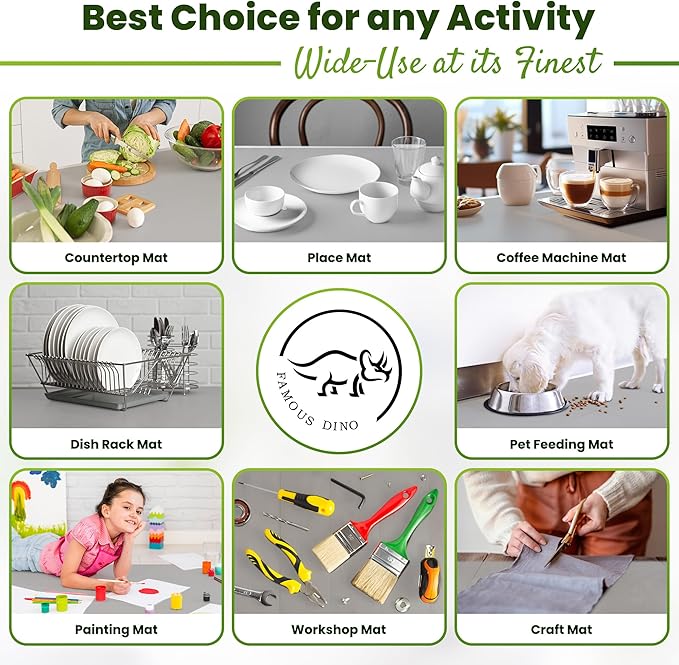 - ✔️VERSATILE SILICONE MAT: Ideal as a kitchen counter mat, silicone baking mat, coffee mat, countertop protector, dish drying mat, silpat baking mat or workbench mat, heat resistant mats for countertop. Provides a durable and non-slip surface. Perfect gift for Christmas, Father s, Housewarming, Thanksgiving.
